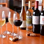 『もっと気軽にワインバルを楽しんでほしい』という当店の想いを体現すべく、グラスはなみなみ◎ボトルは赤10白10の20種を常備し均一価格でご提供!