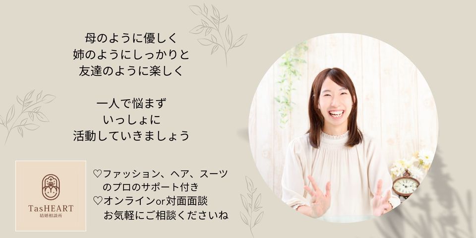 TasHEARTは「婚活初心者サポート」が得意です。A20〜30代中心ですが、幅広い年代の方が活動されています。