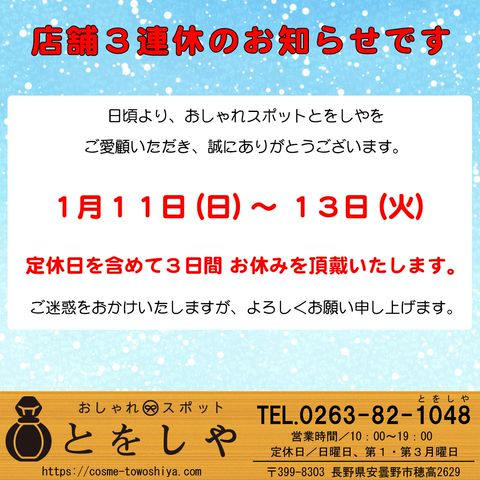 毎週日曜、第1・第3月曜定休日