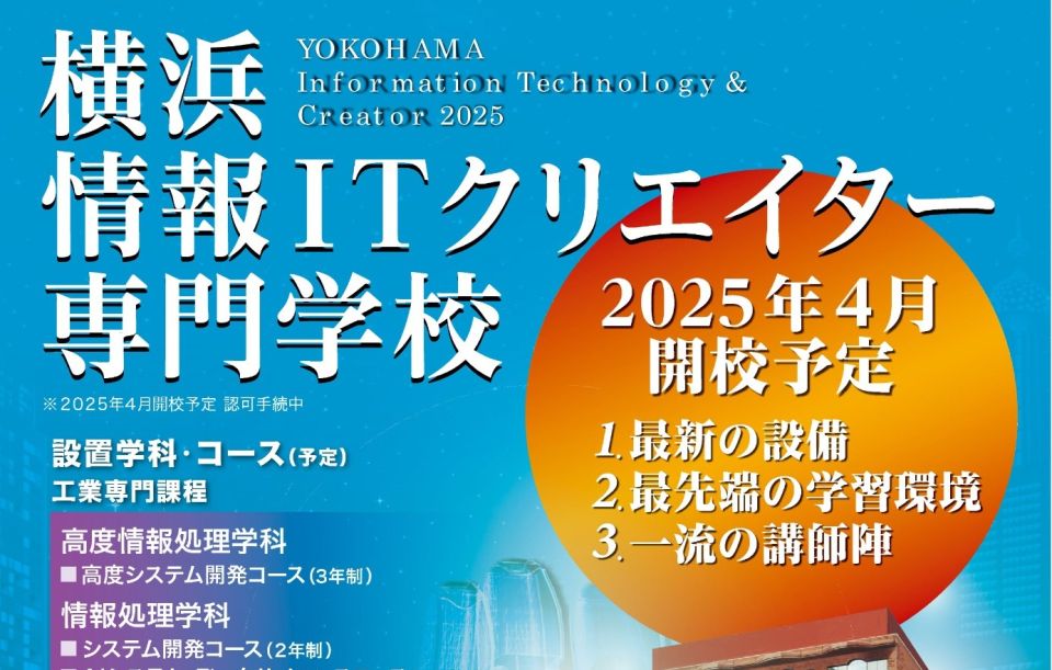 横浜に新しい学校が出来ます☺ 横浜情報ITクリエイター専門学校※2025年4月開校予定
