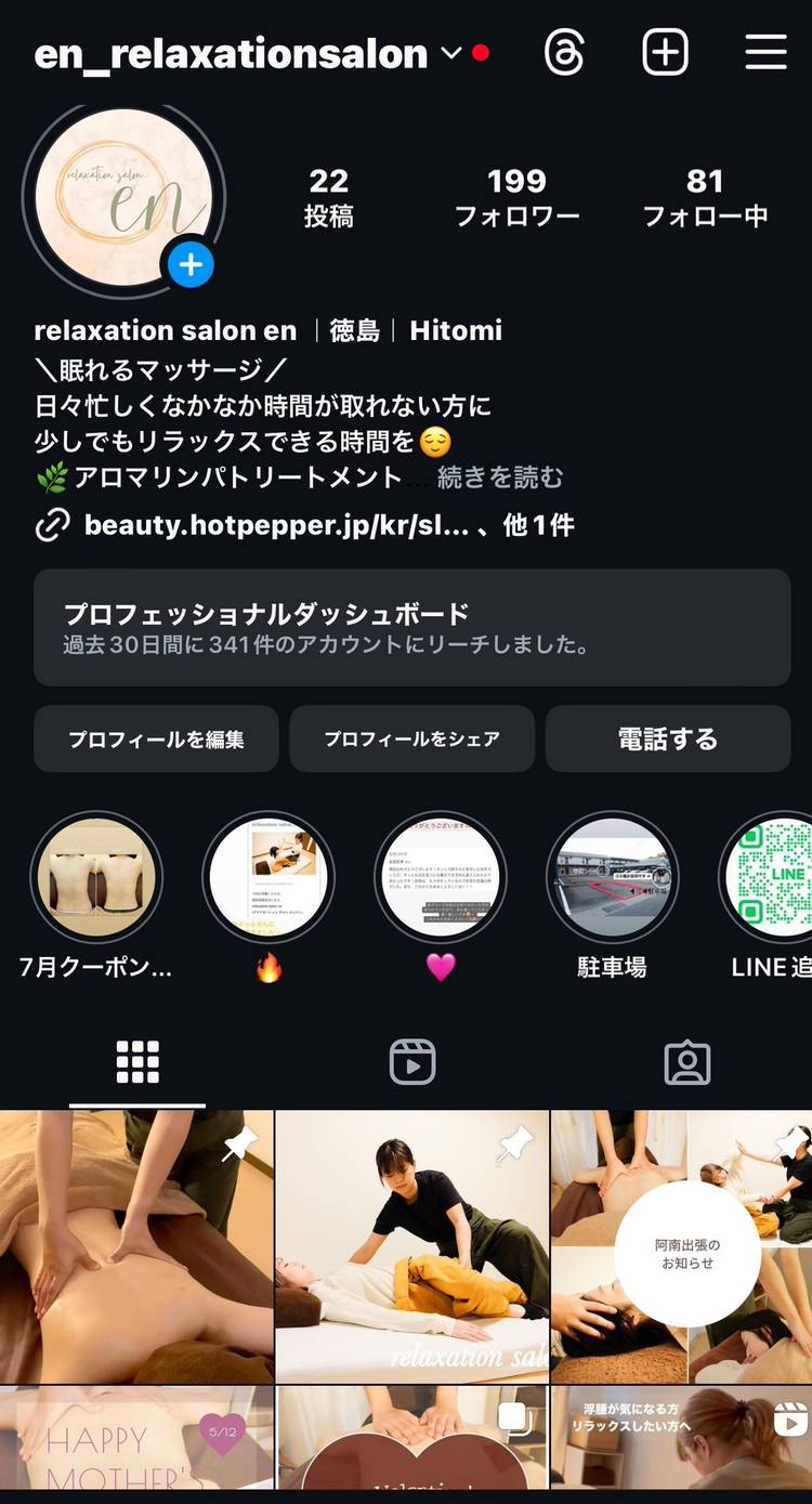 Instagramもしています✨ こちらでは定期的にストーリーでお知らせもしてますので是非フォローよろしくお願いします☺️ https://www.instagram.com/en_relaxationsalon?igsh=MWZ2eXA3Nmc2d3Q0aQ%3D%3D&utm_source=qr