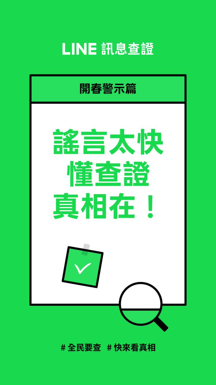 LINE官方訊息查證。轉傳前查一下真假!