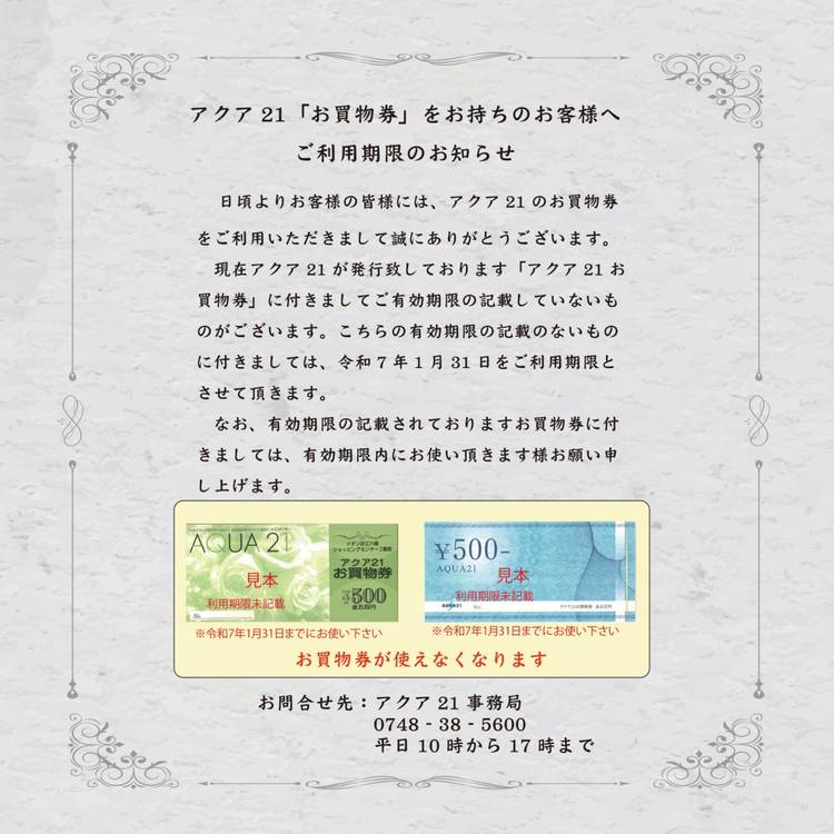 〒523-0891 滋賀県 近江八幡市 鷹飼町179番地 AQUA21