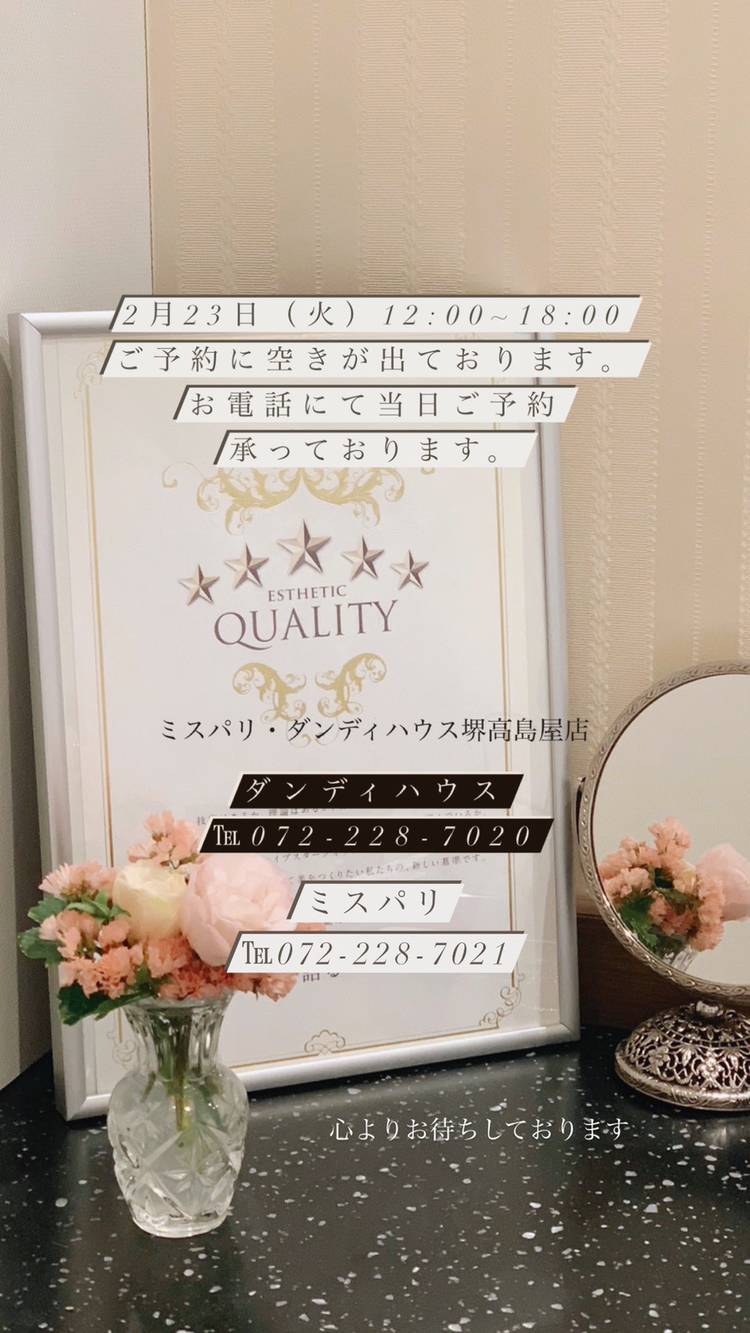 新年あけましておめでとうございます🎍🌅 旧年中のご愛顧を感謝いたしますとともに、本年も皆さまがお健やかに大活躍される素敵な一年となりますよう心からお祈り申しあげます。 ダンディハウス・ミスパリでは、引き続き徹底した衛生管理と感染予防対策を実施しています。安心してご来店ください。 今年もご愛顧の程をよろしくお願い申しあげます。 今年も会員様限定で、お年玉キャンペーンが始まりました🐯✨ 詳...