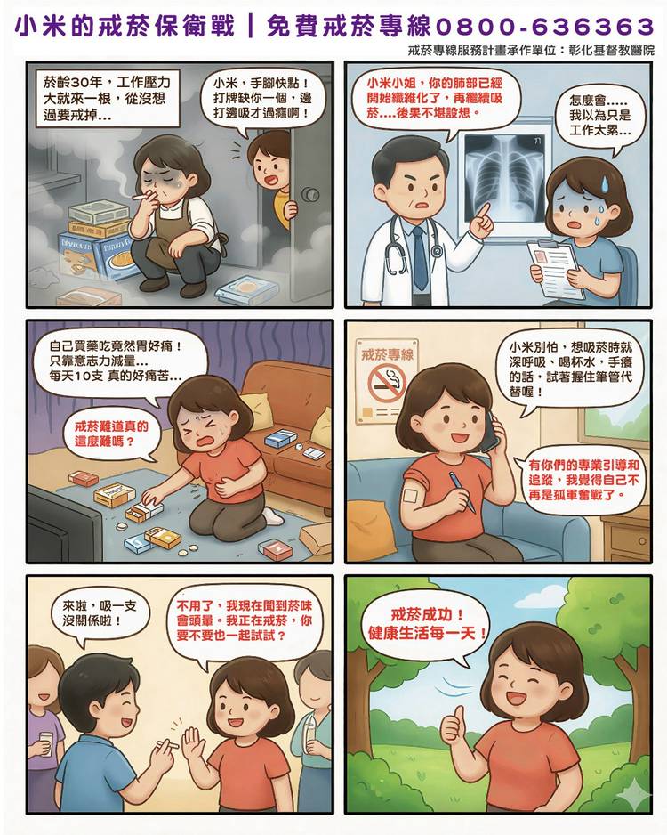 國民健康署戒菸專線服務時間為周一至周六上午9時至晚上9時,0800-636363免費電話幫助您量身設計戒菸計畫,提供便利性、隱密性高的一對一戒菸諮詢,服務過程完全免費,也會主動定期提供電話與簡訊的關懷,陪伴您成功戒菸!🤩🚭