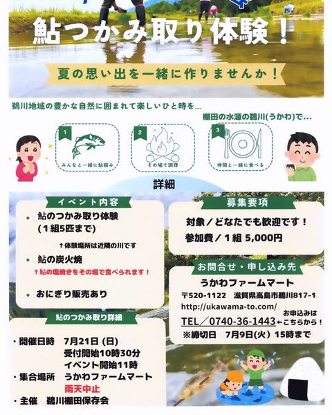 「うかわファームマート」へようこそ(^v^)。 前面に琵琶湖が広がり、振り向けば鵜川の棚田風景。滋賀「白鬚神社」の近くにある農産物直売所のうかわファームマートです。 自然たっぷりの地に「地元野菜」「地元加工食品」「花」「手作りクラフト作品」が並ぶ直売所です。 平成28年より鵜川の棚田オーナー制度を開催し、数年間耕作放棄田となっていたほ場、3600㎡の鵜川の棚田を見事復活しました。 そんな、滋賀県高島市の南の入り口にある、三角屋根の「うかわファームマート」にぜひお越しください。お待ちしています。