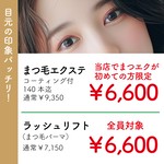 まつエクメニューも好評!大会で連続優勝経験のスタッフによる目元のデザイン提案に定評があります。