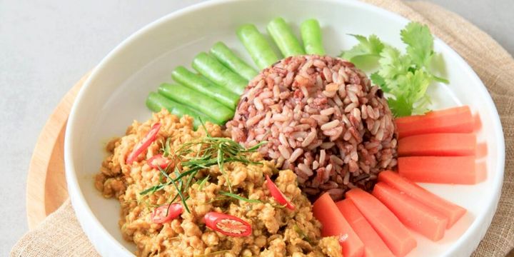 ข้าวกล้องคลุกกะปิอกไก่ลีน