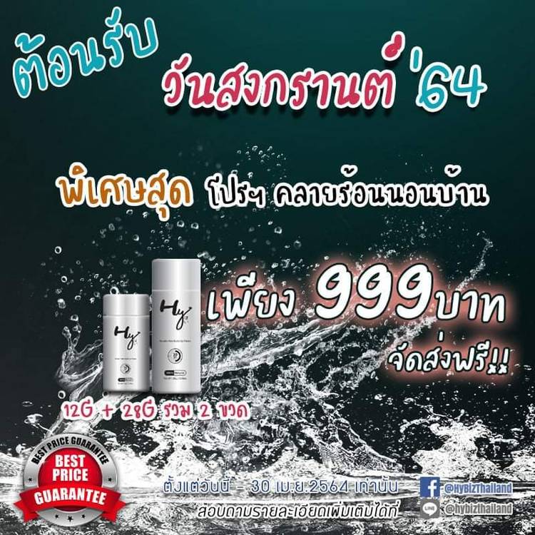 📢สงกรานต์2564🎈🎀 HyBizThailand จัดโปรพิเศษ ปลอบใจ ลูกค้าที่น่ารักทุกท่าน 💧🌊อดเล่นน้ำไม่เป็น สวยหล่อ หลบร้อนอยู่บ้านได้ ด้วย HY keratin Hair Fiber ขนาด 12 กรัม 1 ขวด + 28 กรัม 1 ขวด สีใดก็ได้ เซทค...
