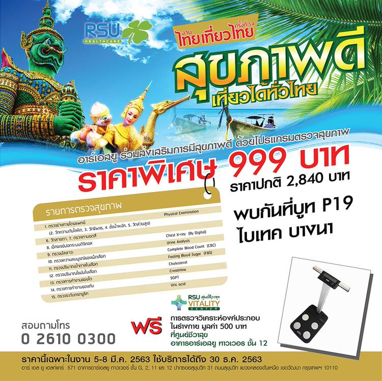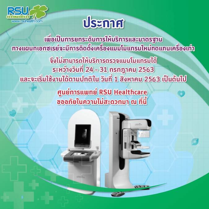 RSU Healthcare และศูนย์การแพทย์ในเครือฯ ขอเรียนแจ้งให้ทราบว่า เทศกาลปีใหม่ปิดให้บริการในวันที่ 31 ธันวาคม 2563 ถึงวันที่ 1 มกราคม 2564 เปิดให้บริการตามปกติในวันที่ 2 มกราคม 2564 RSU Healthcare will ...