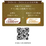 LINE友だち限定!《早割》3月1日まで使える【3,000円OFF】クーポン&配送サービス【2,000円分】特典🎁