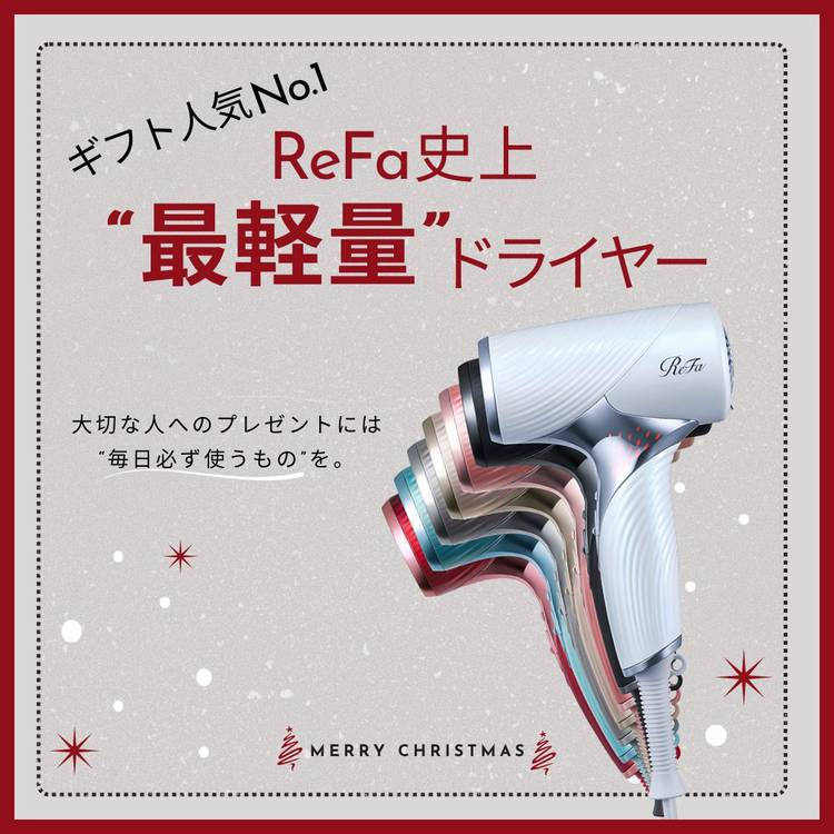 〈〈 ReFa最軽量の “ 上質ギフト ” 〉〉 大切な人へのプレゼントには、“毎日必ず使うもの”を選ぶのが正解◎ 今年はその中でも、ReFa史上最小・最軽量のドライヤーが圧倒的に人気です🎄✨ 手に取った瞬間にわかる、驚くほどの軽さ! コンパクトなのに、仕上がりはしっとりツヤツヤ。 ReFaならではのプロセンシング機能とハイドロイオンで、 乾かすだけでまとまりやすい髪に仕上がります👏 ...