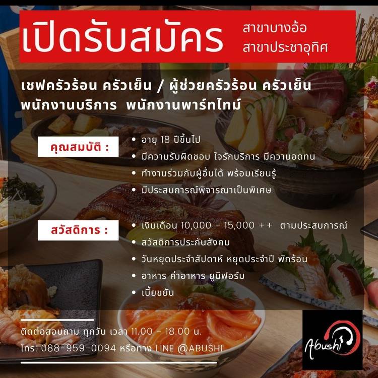 พักร่างจากวันทำงาน แวะมาชาร์จพลังให้ร่างกายด้วยโอเมก้าจากแซลมอนอร์เวย์สดๆ ที่ Abushi กับครับ สดแค่ไหนมาลองกันได้ที่ร้าน ไม่พูดเยอะเจ็บคอ!!! ร้าน Abushi เปิดทุกวันอังคาร-วันอาทิตย์ ตั้งแต่เวลา 11.00-2...