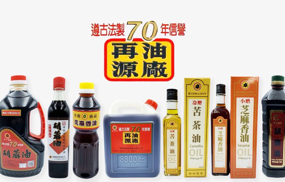 美味健康料理除了靠廚師的烹飪功力外,好的食用油也是靈魂!飄香七十年的田中再源油廠,所生產的胡麻油、馨油、苦茶油、花生油,遵循古法製作,嚴格把關每一道製作程序,營養成份高,絕不添加任何化合物,是大眾所指定天然健康植物油,更榮獲旅遊局評定為田中特產。卓老闆表示,田中設有軍營,再源產品常是阿兵哥返鄉時最佳伴手禮,當然也有搬到外地的朋友,要買油都會不辭辛苦回來添購,因為家鄉的好味道,真的讓他們憶「油」未盡!今日為了服務更廣大講求自然、傳統、植物天然油族群,精美包裝禮盒組,讓你認識好油、用好油、送好油。