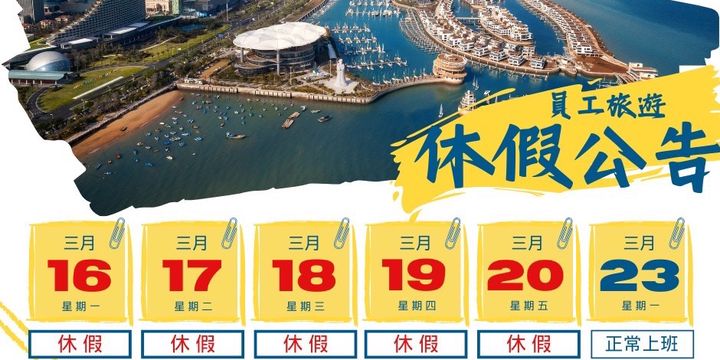 3/16-20員工旅遊,3/23正常營業