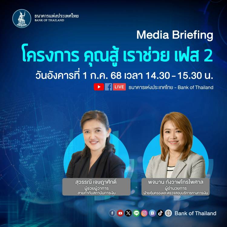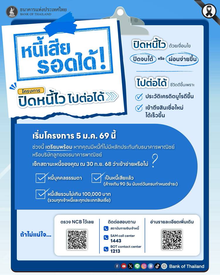 วันนี้ เวลา 15.30-16.30 น. ขอเชิญทุกท่านรับชมพิธีลงนาม MOU และแถลงข่าว "โครงการปิดหนี้ไว ไปต่อได้" (โครงการแก้ปัญหาหนี้เสียผ่านกลไกการซื้อหนี้รายย่อยของบริษัทบริหารสินทรัพย์ (AMC) ✨ . ถ่ายทอดสดทาง soc...