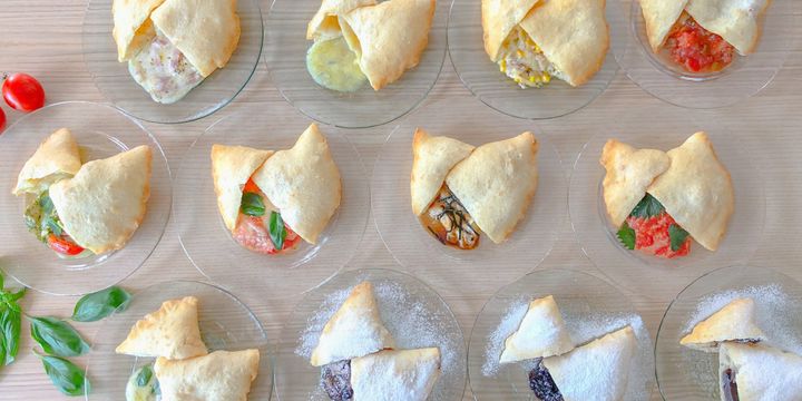 本場イタリアで「Panzerotti(パンツェロッティ)」と呼ばれる、生地で具材を包んで高温の油で揚げたピザ「揚げピザ」。