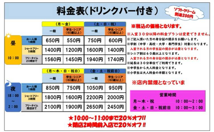 カラオケズーク大在店 お会計10%オフ