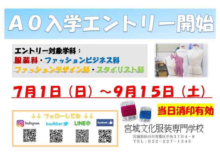 こんにちは! 宮城文化服装専門学校です 宮城文化服装専門学校で一緒に学んでみませんか? 新しい”自分”になれるチャンスです☆ ファッションのスペシャリストを目指しましょう♪