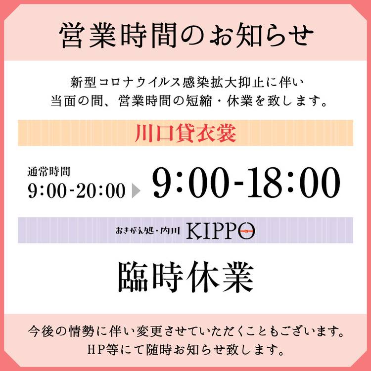 こんにちは(moon big smile) 川口貸衣裳&KIPPOです(red ribbon) ~川口貸衣裳からのお知らせ~ (pink flower)七五三ご予約受付中(pink flower) \ 当店のレンタルは / (light bulb)前撮り衣裳代《無料》※お宮参りと別日OK (light bulb)持ち込みのお着物を、お子様のサイズにお直しOK(有料) (light bulb)...
