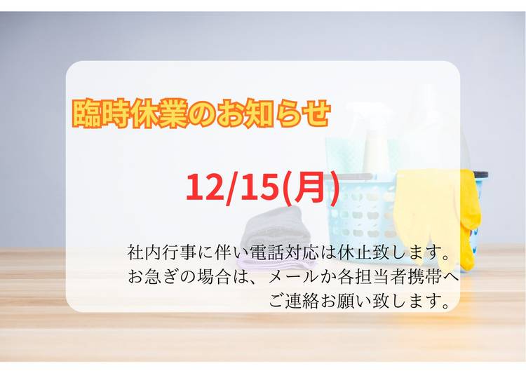 平素は格別のご高配を賜り厚く御礼申し上げます。 弊社は8/11(木)~15(月)まで夏季休業とさせていただきます。 ご迷惑をおかけいたしますが、何卒よろしくお願いいたします。