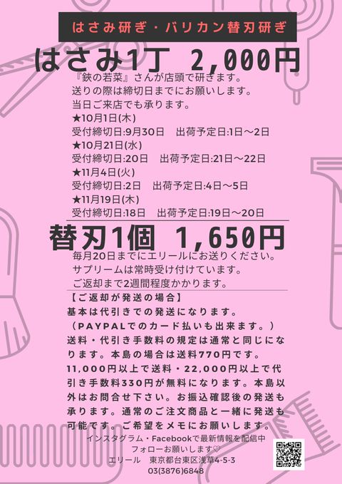 月1〜2回、鋏の若菜さんが店頭で鋏研ぎをしています。