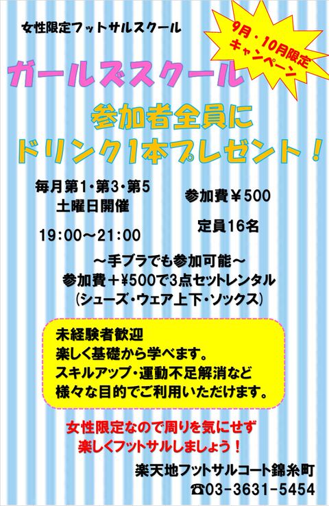 錦糸町駅スグ!! 個人フットサル・クリニック毎週開催♪ 毎月大会も開催♬優勝で商品GET❤ ボール蹴るなら★RAKUTENCHI