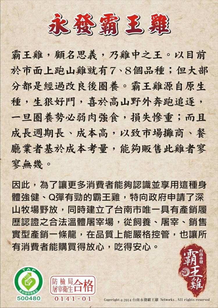 ~選擇滴雞精小撇步~ 永發滴雞精採用古法滴制,耗時費工製造而成。 製造過程中,絕無加入半滴水,亦無防腐劑,香料,色素或其他之添加物, 完整保有全雞之精華與營養,無腥味,不油膩。 本滴雞精不但能迅速補充體力,恢復元氣, 對於產前補胎,產後補身,熬夜,病後調體養身更是極佳是聖品。
