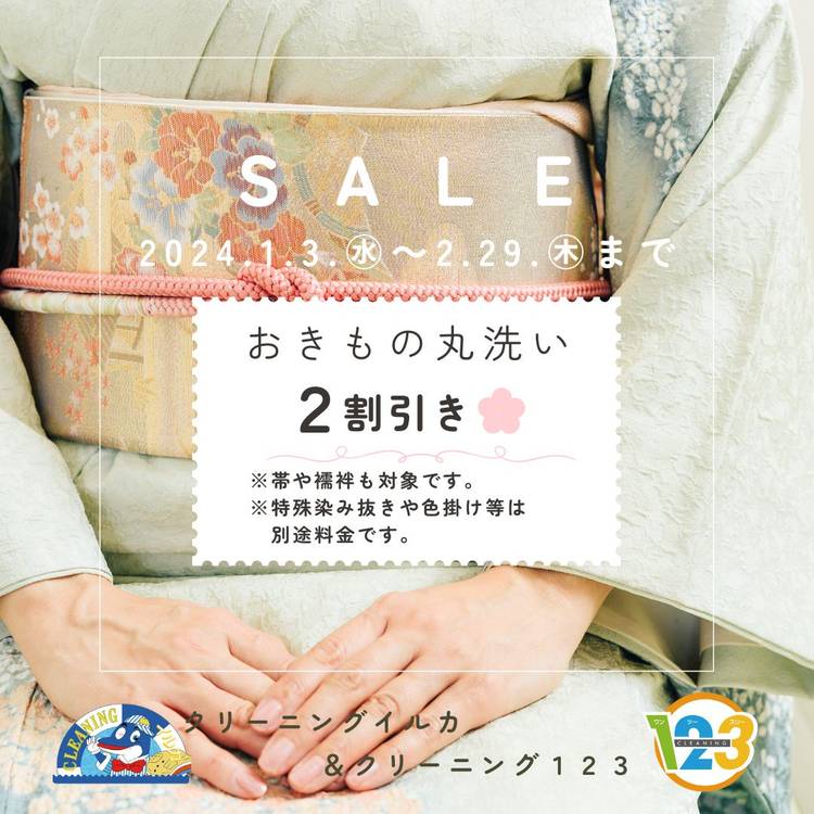 『9月29日クリーニングの日』キャンペーン 皆様こんにちは!! 9月29日はクリーニングの日です(^O^)/ 2024年9月1日(日)~30日(月)迄、 組合主催の嬉しいプレゼントが当たるアンケート抽選を開催します。 簡単なアンケートになっていますので、 是非ご応募くださいね。 ※応募用紙は店頭にてお配りしております。 更に、 イルカと123の全店で、 9月29日(日)は<ポイント30倍>です!!...