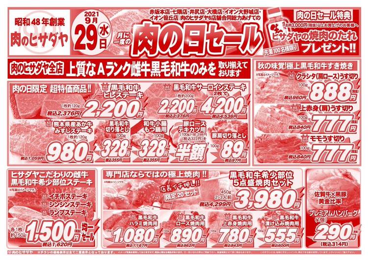 本日28日と、明日29日は年に一度の✨いい肉の日大売り出し✨日頃のご愛顧に感謝を込めまして、特別価格で大御奉仕☺️ステーキから、すき焼き用、切り落としまでALL佐賀牛で取り揃えました😤朝早くから、じゃんじゃんお切りしております! 皆さまの冷蔵庫・冷凍庫を当店の佐賀牛でいっぱいにして下さい‼︎❤️🔥 両日とも先着100名様、3000円以上お買い上げのお客様に鶏ごぼうめしの具をプレゼント🎁 皆...