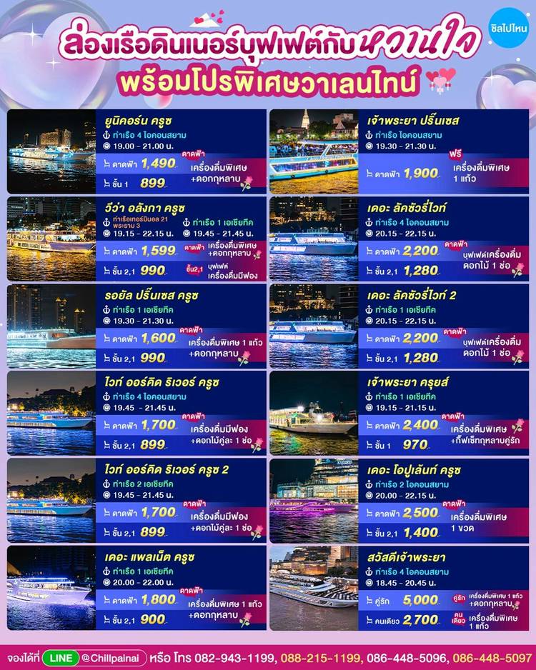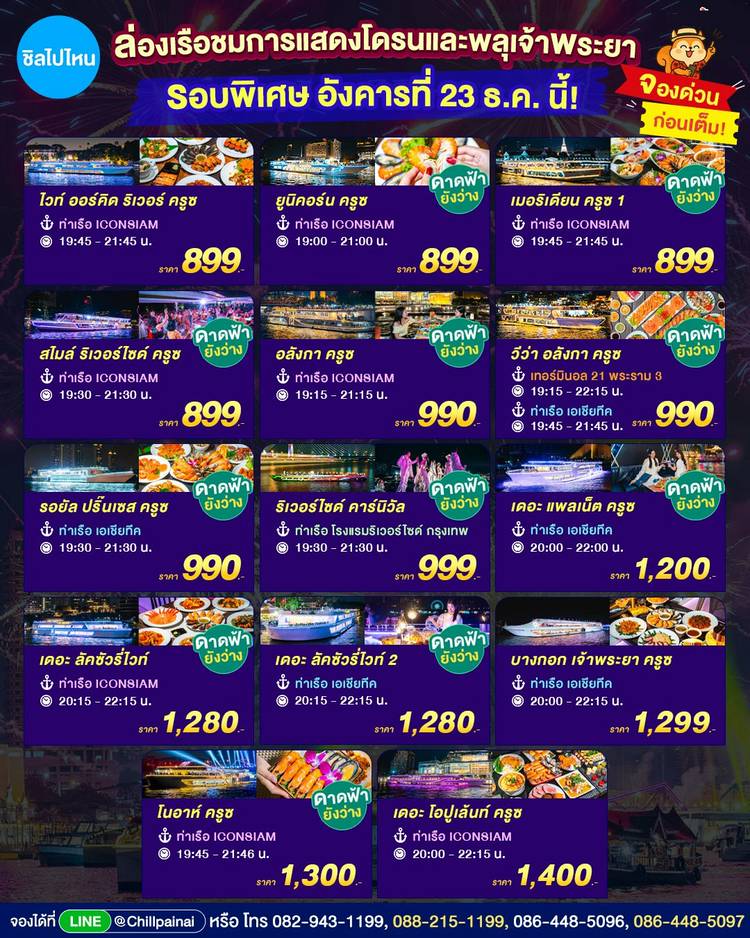 🎇 สักครั้งในชีวิต ไปเคาท์ดาวน์ข้ามปีบนเรือเจ้าพระยากัน คัดมาให้แล้ว เรือบุฟเฟต์ยังว่าง เลือกโซนที่ชอบได้เลย 📣📣 . ⚓🛳️ ขึ้นเรือที่ ท่าเรือเอเชียทีค 🛳️ ⚓ 1. วีว่า อลังกา ครูซ ✅ เริ่มต้น 4,500 บาท/...