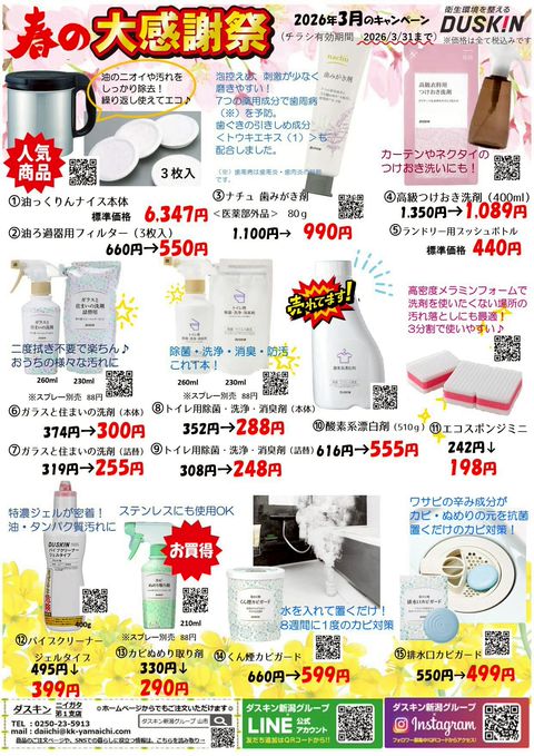 ダスキン新潟グループは、株式会社山市が展開する、 「ダスキンニイガタ」「ダスキンニイガタ第一支店」「ダスキンニノウジ」「ダスキンオケサ」「ダスキンカモガワ」「ダスキンタカダヤ」 で構成されるグループです。 昭和38年株式会社ダスキン創業以来、新潟県下では最も古く、大きく事業を展開しております。 「いつもさわやか、清潔に。」をモットーに、企業様はもちろんストア様や個人様宅など、様々なシーンで皆様のお手伝いを致します。