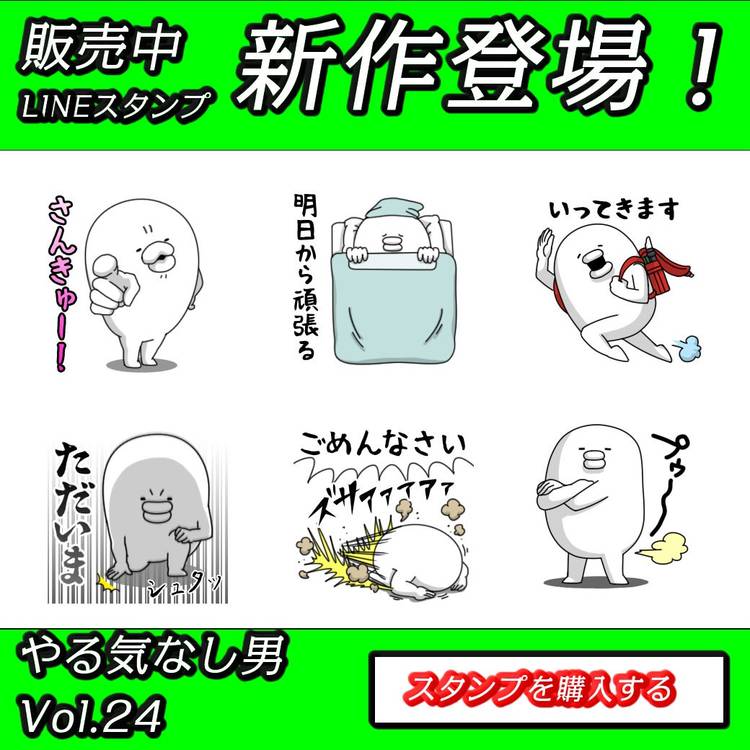 やる気なし男☆動くスタンプシリーズ最新作が公開だすっ! ベタなギャグも入ってるけど・・・今回は使いやすい!・・・はず ▼とりあえず、ちぇけら~だすよ! https://line.me/S/sticker/8364014
