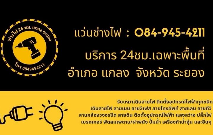 ช่างไฟ บริการ 24ชม. ในพื้นที่ตลาดสามย่าน แกลง ระยอง โทร 084-9454211(ช่างแว่น) รับเหมางานระบบไฟฟ้าภายใน-นอก เดินสายไฟ สายเมน สาย3เฟส สายโทรศัพท์ สายเลน สายทีวี สายลำโพง สายแอร์ สายกล้องวงจรปิด สายดิน เดินสายไฟร้อยท่อ,ตีกิ๊บ,ฝัง,รางสายไฟ รับติดตั้งอุปกรณ์ไฟฟ้าทุกชนิด แสงสว่างโคมไฟ ไฟป้าย ปั้มน้ำ เครื่องทำน้ำอุ่น สวิตไฟ ปลั๊กไฟ ปลั้กกราว เบรกเกอร์ ตู้คอนโทรน พัดลม เพดาน,ฝาผนัง ไฟรั้ว กล้องวงจรปิด ไฟสนาม ไฟสวยงาม ไฟกริ่ง ตรวจเช็คระบบไฟ ซ่อมไฟ แก้ไฟ ไฟดับ ไฟช็อต ไฟรั่ว ไฟตก ปั้มน้ำ เครื่องทำน้ำอุ่น พัดลม ทำไมต้องโทรเรียกช่างแว่น...เพราะเป็น ช่างไฟในพื้นที่และอยู่ในพื้นที่แกลง ตามตัวง่าย ที่อยู่ชัดเจนขึ้นในแผนที่ และเป็น ช่างไฟที่มีประสบการณ์การทำงานระบบไฟในพื้นทีมามากกว่า 20ปี เป็นที่รู้จักกันดีในพื้นที่ตลาดสามย่าน แกลง จึงมั่นใจในฝีมือการทำงานได้ว่าต้องมีความปลอดภัยในการใช้งานแน่นอน โทรนัดกับช่างเพื่อดูหน้างาน ตกลงประเมินราคา ค่าแรง คิดเป็นจุด ตามความยากง่ายของงานนั้นๆ ช่างลงมือทำงาน เสร็จตรวจเช็ค ส่งงาน
