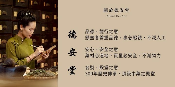 百年老舖德安堂,創立於清康熙年間,歷經張氏家族二十代傳承,堅持品質至上,以百年傳承的專業,樹立業界典範。