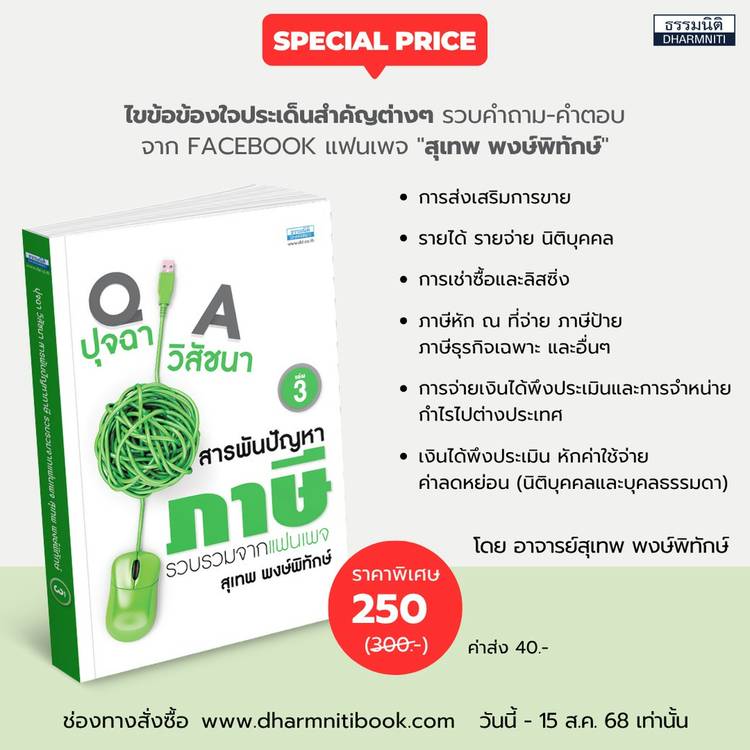 ประเด็นภาษีที่ผู้ประกอบธุรกิจอสังหาริมทรัพย์ต้องรู้❗️ หนังสือประเด็นภาษีในธุรกิจอสังหาริมทรัพย์ ปรับปรุงใหม่ พิมพ์ครั้งที่ 2 โดยผู้ช่วยศาสตราจารย์ ดุลยลักษณ์ ตราชูธรรม (ที่ปรึกษากฎหมายภาษีอากร และอาจ...