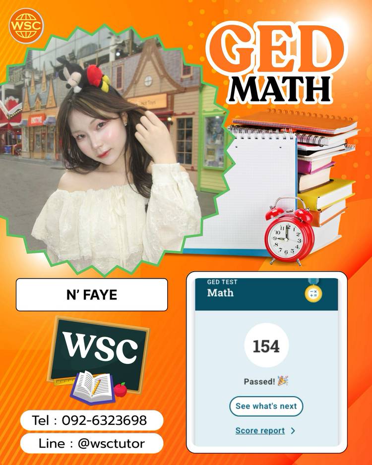 🎉🎉 ขอแสดงความยินดีกับ N'Faye ที่สอบผ่าน GED-Social Studies เป็นที่เรียบร้อยแล้ว เก่งมากๆเลยค่ะ 🚩 N'Faye ลงเรียนกับทาง WSC แบบเรียนกลุ่ม ที่สาขาห้างซีคอนสแควร์ ศรีนคริทร์ ชั้น3 ค่ะ ขอบคุณที่ไว้ใจทา...