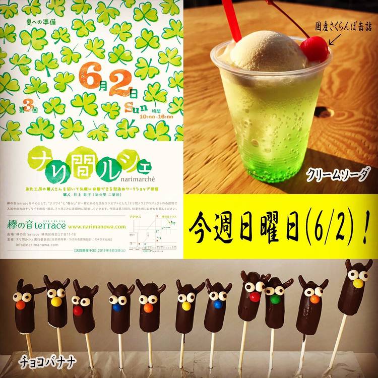 告知が激遅! 今週日曜日(6/2)、3回目のナリ間ルーシェ! 6/2(日)10時~16時、練馬駅徒歩9分、欅の音terrace アパートの多くが色々出店しまーす! 【101】 aotk(あおたけ) @aotk115 チャイ!生ビール!えびせん!唐揚げ!(※予定) 【102】 はと工房。←私! @hato_3 フエルト雑貨!マトリョーシカバッジ笑!! クリームソーダ!チョコバナナ!ペットボトル!...
