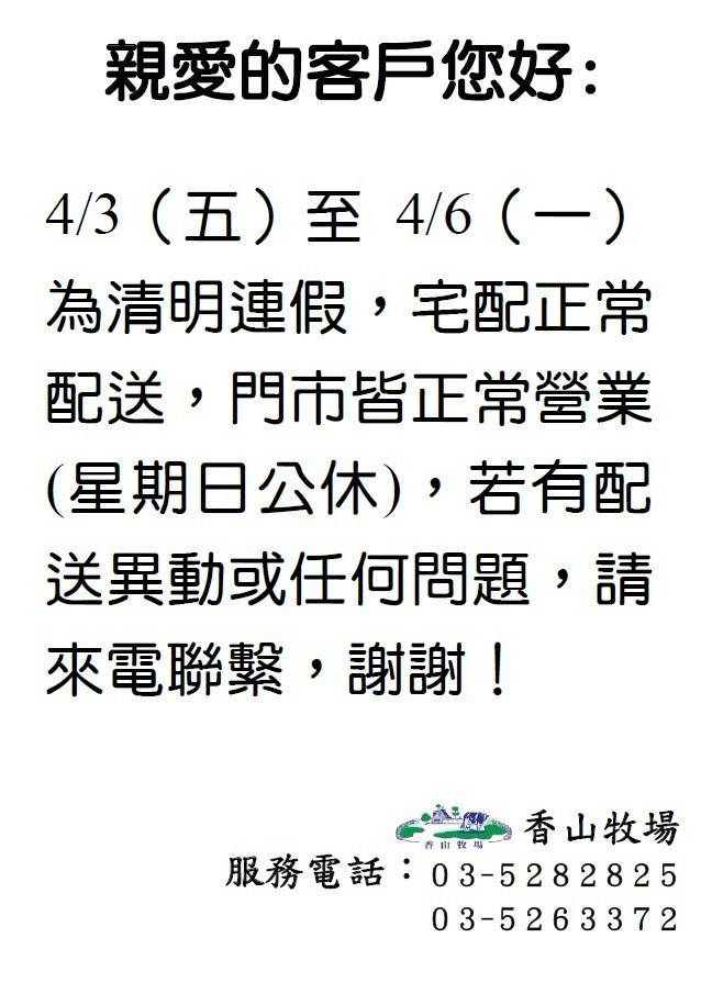來自新竹【香山牧場】單一牧場 自產自銷之鮮奶相關產品 所有產品皆經過嚴格檢驗 100%堅持自然風味 讓您喝得安心又營養
