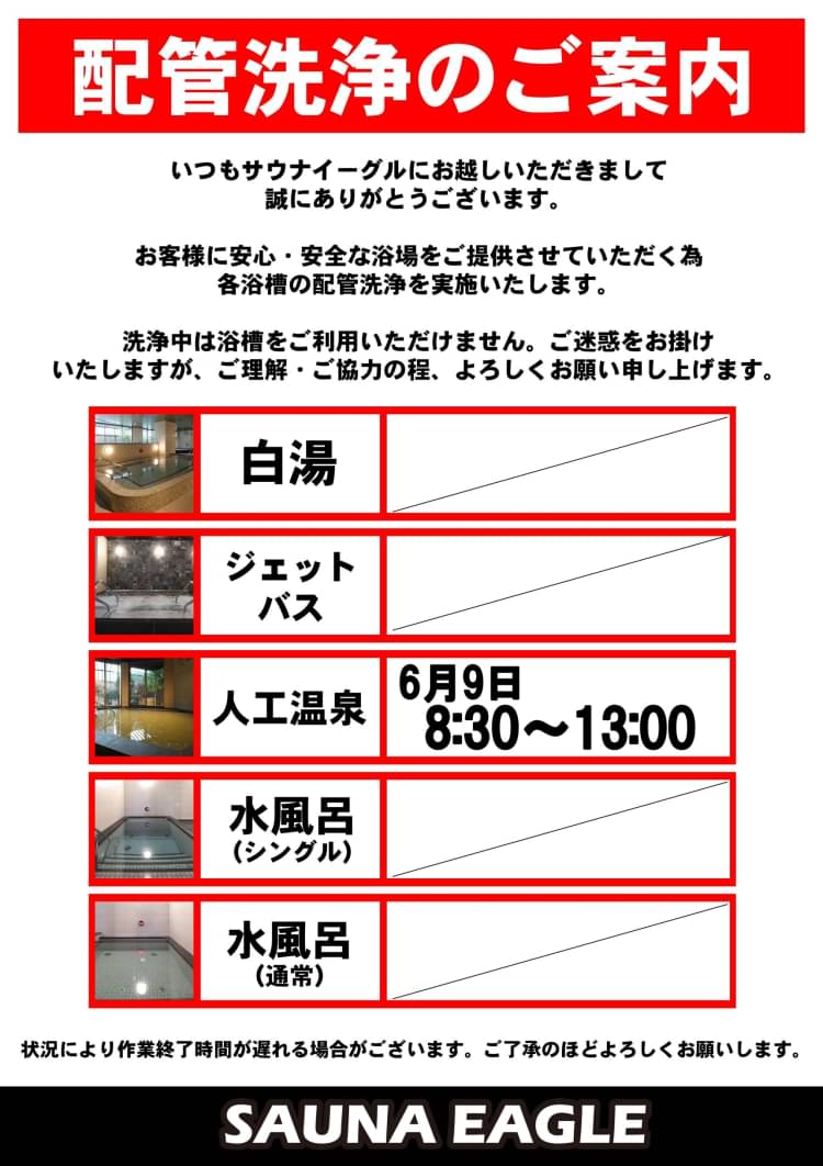 おはようございます サウナイーグルです お客様にお知らせです! ■今週末は俺たちのサウナ飯フェア 6/20(日)までレストランで俺たちのサウナ飯フェアを開催! ・肉盛りスタミナ麺 ・牛合盛り焼肉丼 ・合盛りチキン丼 の3種です! どれもボリューム満点ですので、サウナ後にがっつり食べて スタミナを付けましょう! ■今週末はイーグルの日 6/19(土)はイーグルの日です! ①会員様のポイン...