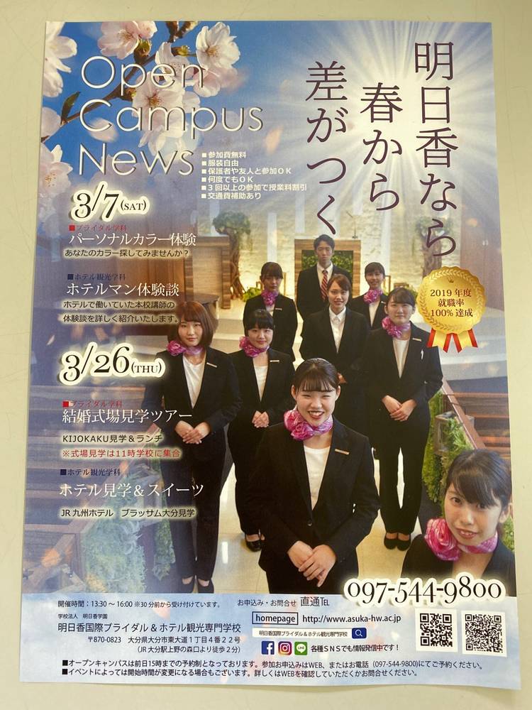 大分で唯一のブライダルとホテルの専門学校