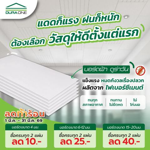 ดูร่าวัน (DuraOne) จำหน่ายสินค้าวัสดุก่อสร้างที่คุ้มค่า ได้มาตรฐาน มีคุณภาพ ไม่เพียงแค่สินค้าไฟเบอร์ซีเมนต์ เรายังมีสินค้าสำหรับงานก่อสร้างบ้านทั้งหลัง ไม่ว่าจะเป็น ปูน อิฐมวลเบา กระเบื้องหลังคา สกรู และอื่นๆ อีกมากมาย