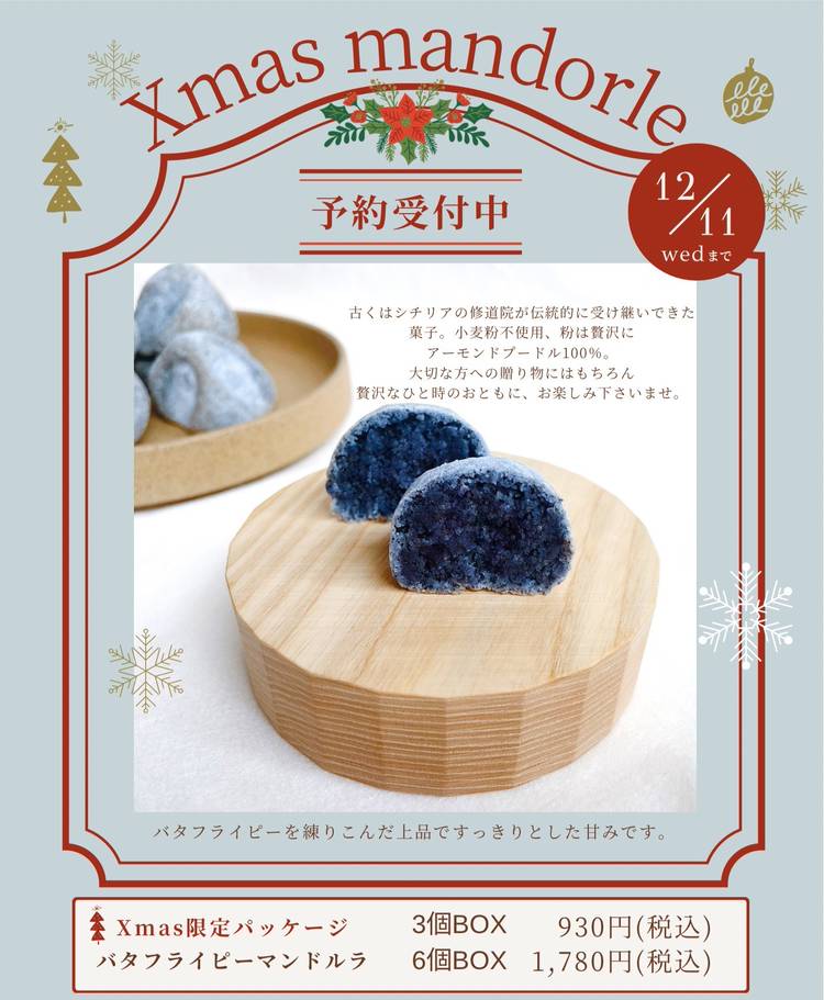 🎄先行予約期間、明後日まで!🎄 イタリアの伝統菓子【マンドルラ】にバタフライピーを練りこんだSICILIAMOさんの大人気スイーツが クリスマス限定BOXに入って登場します🌲 🎄仕切りのついた箱にリボンがかかった クリスマス限定マンドルラは数量限定🎁 12月11日まで先行予約の受付を行っています💡 小麦粉不使用、アーモンドプードル100%の甘すぎない上品なお菓子は 大切な方への...