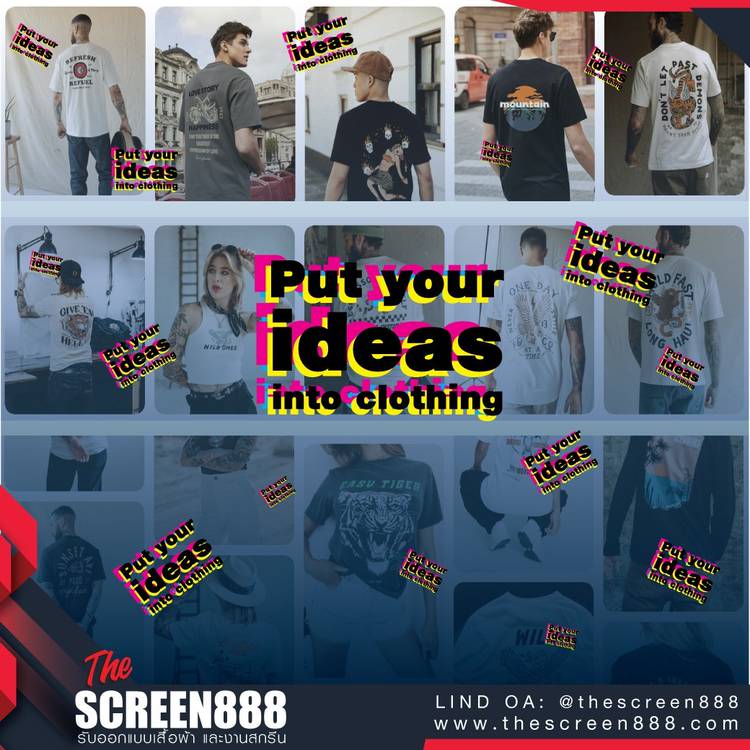 The Screen 888 ยินดีให้บริการ - รับออกแบบและสกรีนเสื้อ - สกรีนกระเป๋า - สกรีนผ้าทุกชนิด - พิมพ์ DFT / DTF - และของพรีเมี่ยมต่างๆ ชมผลงานได้ที่ www.thescreen888.com