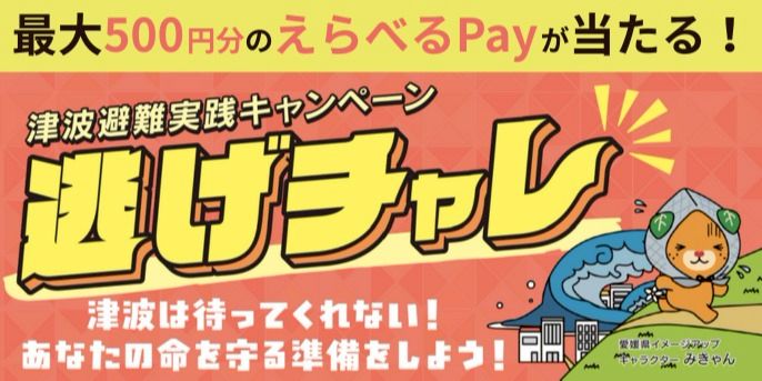 ハザードマップや最寄りの避難場所の確認など、津波に備えた取組みに挑戦しよう!キャンペーン参加は愛媛県LINE公式アカウント内の防災メニューから♪【第2回】令和8年1月12日(月)~2月27日(金)