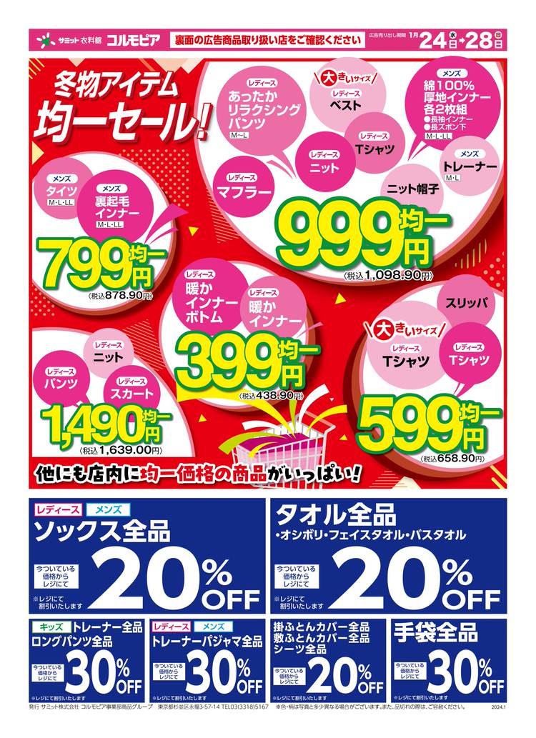 チラシ情報ですshiny < 売り出し期間 > 3/27(水) ~ 3/31(日) \\ 新学期準備特集 // 入園・入学・新学期のシーズンです! 身の回りのアイテムは早めに準備ok ご来店をお待ちしておりますmoon grin 【サミット衣料館 コルモピア】