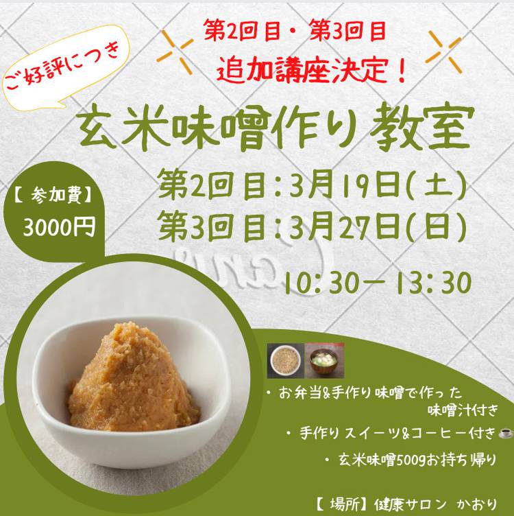梅雨入りも間もなくやって参りますが、皆さま如何お過ごしでしょうか? 前回、大好評だったため、 「混ぜて野菜を入れるだけの簡単!安心!~ぬか床づくり教室&健康講座~」 の第二回目、開催いたします! 袋で作る簡単ぬか漬け「ぬか床元氣」で一緒にぬか床作りをしませんか? 🌸前回お申込みに間に合わなかった方 🌸少しでも興味のある方 ぜひぜひお気軽にご参加くださいませ! ...