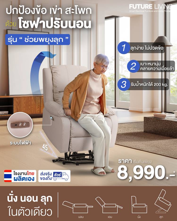 ปกป้อง ข้อ เข่า สะโพก🦵 ด้วยโซฟาปรับนอน รุ่น "ช่วยพยุงลุก" หมดห่วงเรื่องการบาดเจ็บ เหมาะสำหรับผู้สูงอายุหรือผู้ที่มีปัญหาเกี่ยวกับกระดูกและข้อ นั่ง-นอนสบาย ทำให้ชีวิตง่ายขึ้น Recliner รุ่น ช่วยพยุงลุ...