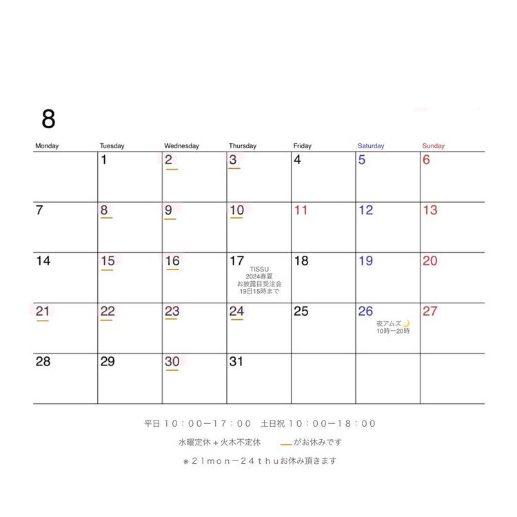 *不定休の為、タイムライン・IG・Blog等でご確認ください