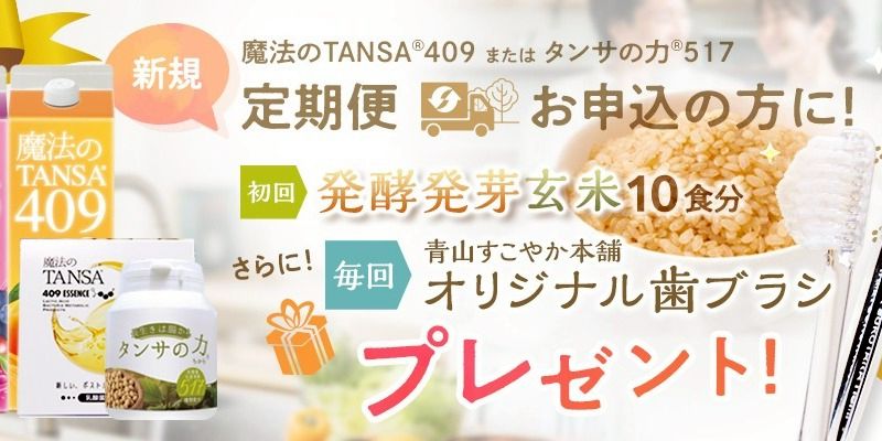 攻める腸活、時短で腸活。 腸活はタンサ。 タンサ脂肪酸をはじめ、409種類の腸内生産物質を含む次世代の健康ドリンク。 腸内フローラを整え、肌質、代謝改善や免疫機能の向上、体脂肪・肥満抑制、薄毛、肝機能改善、口腔内改善、骨密度の改善、が期待できる「次世代のスーパー物質」と言われている【短鎖脂肪酸(乳酸菌生産物質の一種)】をダイレクトに摂取できるドリンクが「魔法のTANSA409」です。 それぞれエビデンスも取得しており、【善玉菌を摂る→育つのを待つ】腸活に比べて時短で結果を出すことが可能です。